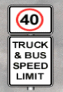 某些类别的车辆将在某些区域受到限制,而其他车辆则没有这种限制。上图显示卡车和公共汽车在这个区域被限制为40公里/小时。汽车和摩托车免于此限制,该区域的标准或标示限速将适用(例如50公里/小时)。